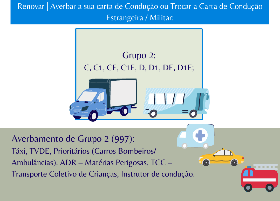 Para os condutores que pretendam averbar na carta de condução o grupo 2 e realizar o exame psicotécnico.